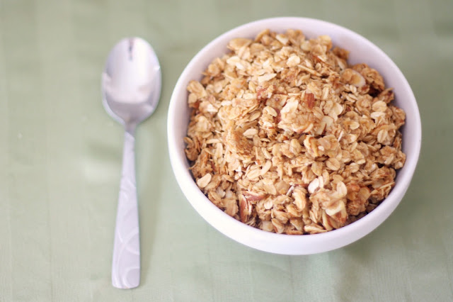 I LOVE granola. I would eat it for every meal. But it is too expensive to buy, and I don’t love that. So I set out a while ago to find the perfect homemade granola recipe. Well, I never found it… It was always too crunchy, too soft, not chunky, not flavorful. Boo. So, after trying more granola recipes than I care to admit, I decided to combine my favorite parts of several recipes into one perfect recipe.