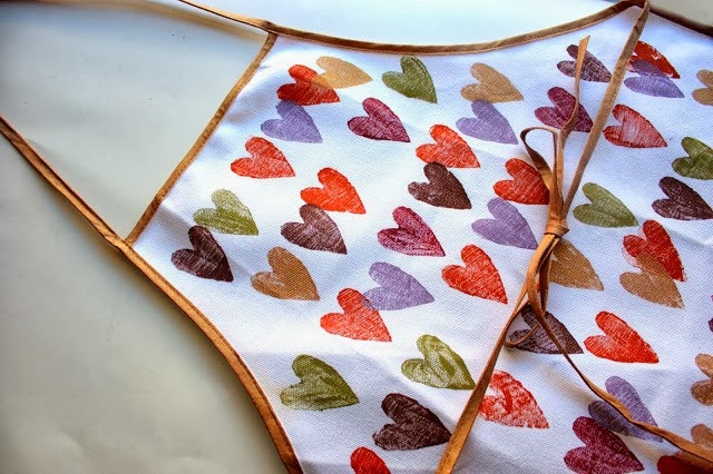 Next week is the holiday where we cook our brains out, followed shortly by the month where we bake our brains out. We need to look cute whilst doing so. Therefore, I bring you one of the easiest DIY’s ever found on this blog, the hand-stamped heart apron. Perfect for covering your clothes while cooking and/or eating and still looking adorbz during the holidays, or to make as a pretty and fun gift for the hostesses/chefs/bakers in your life.