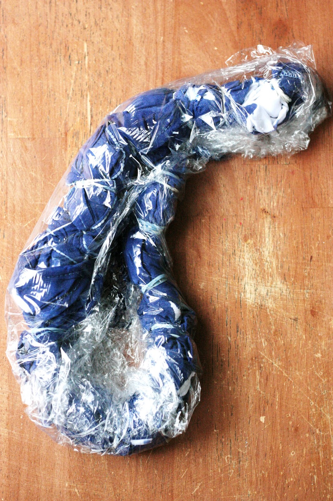 3. Wrap dress in plastic wrap and let set for 6-8 hours or according to your tie dye directions.