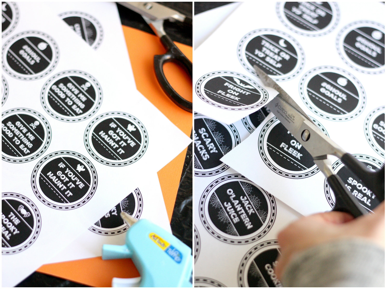 It’s Halloween party week! If you are like us you probably have Halloween celebrations coming out of your eyeballs in the next few days, and if you are throwing one yourself we are here to help! Today we are sharing a little tutorial for throwing together a spooky little get-together with Fanta Orange Soda as our Jack O’Lantern juice (a must for any Halloween party), lots of spooky cookies and creepy cakes, as well as the perfect printable labels to give it some sass. Here is what we did: