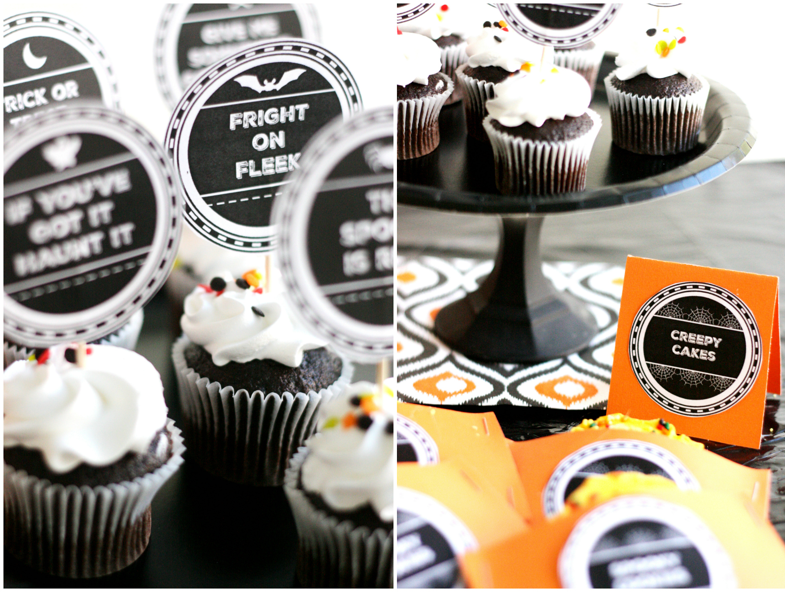 After choosing a fun menu of treats and candies you can download these fun, spooky labels from our shop. Then, glue them on toothpicks, stick them on as labels and your table will be scary cute.