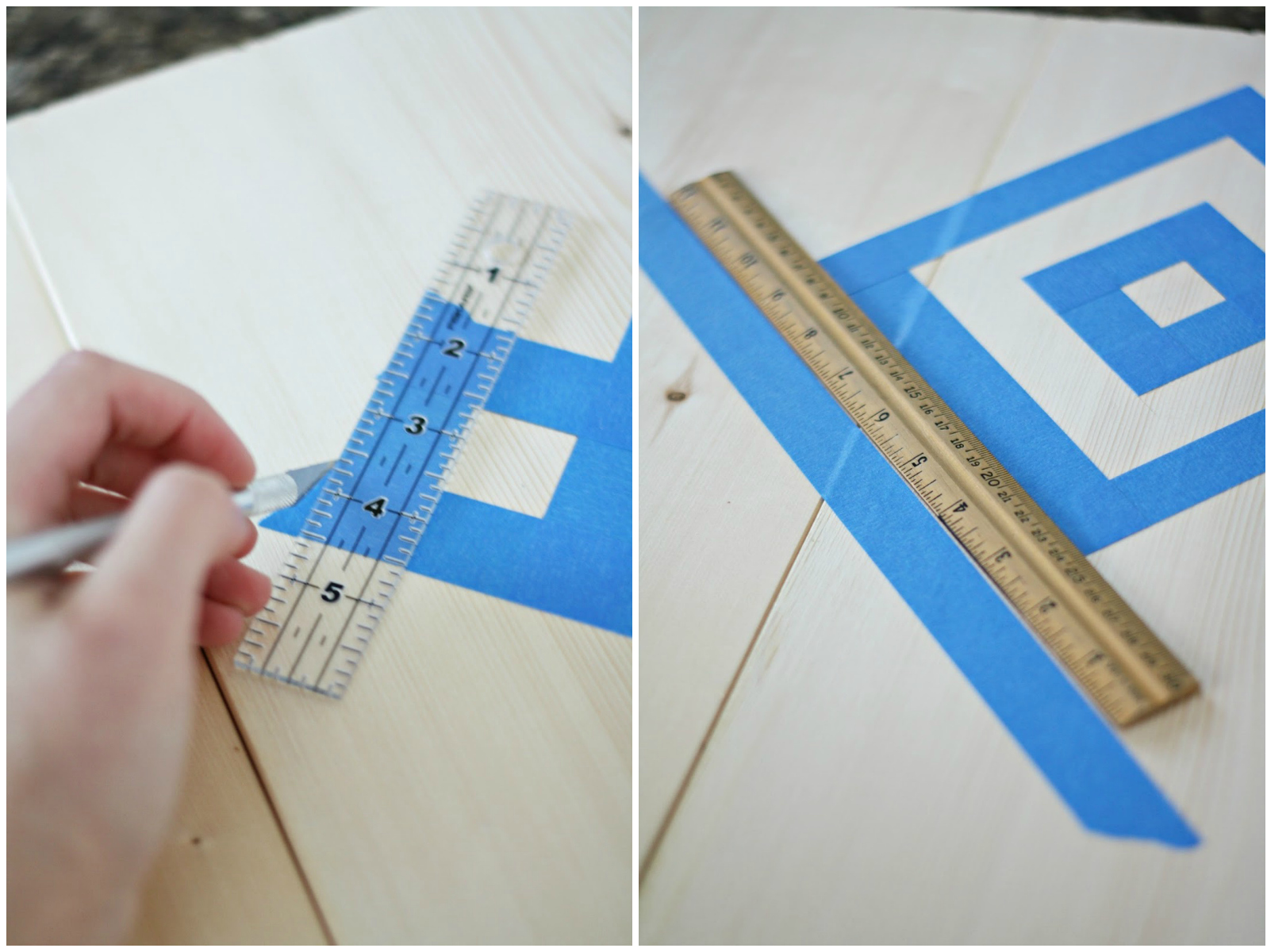 Using your ruler to space out the tape, lay the next lines of tape. Cut the edges. Repeat until the board is covered.